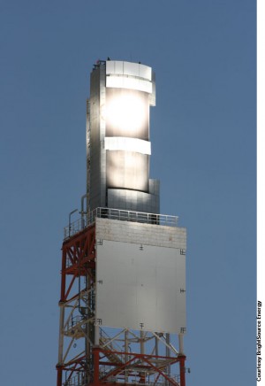 The closed-loop system of steam generation is a low carbon emission alternative to the current process of burning natural gas to produce steam, Chevron says. The demonstration project will employ at least 3,000?and perhaps as many as 7,000?mirrors to collect sunlight and develop up to 20 MW of thermal power. This power will be concentrated onto a 300-ft water tower, converting the water to a superheated steam at a temperature of 550 °C (1,022 °F) that is then injected into wells to heat the oil, lowering its viscosity and allowing it more easily flow out of the reservoir.