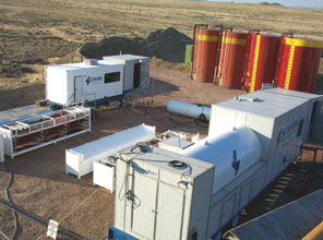 The underbalanced drilling package on one Rocky Mountain well included a rotating control head and four-phase separator.(Images courtesy of Tesco Corp.)