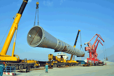 日前,中石化海南煉油核心部件順利運抵天津南港工業區通用散貨泊位,并安全吊裝至“金海洋1號”運輸船舶,順利起航。總重達490噸的抽提蒸餾塔是天津南港港區通航以來接運的最重的大件設備。圖為核心部件運抵天津南港工業區泊位。