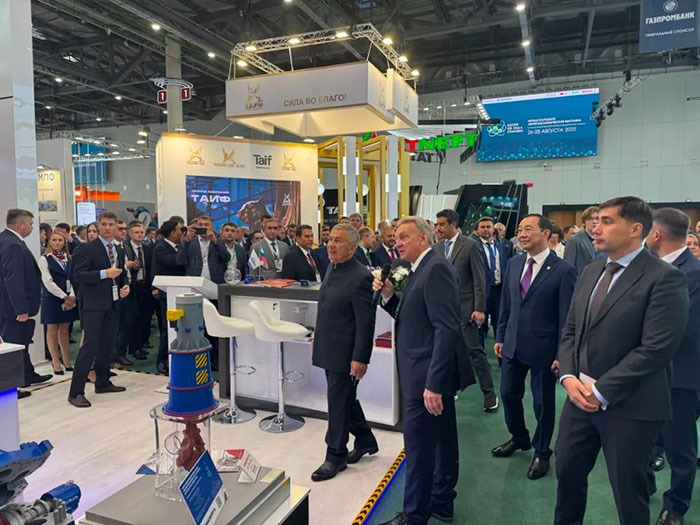8月26日早8時(shí),開幕式正式開始。俄韃靼斯坦共和國行政長官明尼哈諾夫發(fā)表講話。他提到,本屆展會是俄羅斯石油化工行業(yè)最具規(guī)模的國際活動之一,同時(shí)今年是韃靼石油公司(Tatneft)成立75周年,該公司與本展會都是韃靼斯坦共和國石油工業(yè)發(fā)展的象征。明尼哈諾夫特別提到本屆展會上中國展團(tuán)的亮相,指出中俄商貿(mào)合作前景廣闊。